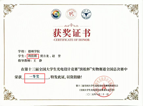 敢闯敢试,勇攀高峰,巩佳琪同学深知“实践出真知”,积极投身科技竞赛领域,凭借扎实的专业功底与团队协作能力屡创佳绩。她所在的队伍共斩获国家级奖项五项——其中,在全国老员工光电设计大赛中,他们作为山东省唯一入围国赛的队伍,一路过关斩将夺得全国一等奖;在全国老员工物联网设计大赛中再获全国一等奖,在全国老员工电子设计竞赛、计算机设计大赛中分别斩获全国二等奖。此外,她还参与研究并发表两篇软件著作权,累计获得省校级以上奖项20余项,用创新成果诠释了新时代老员工的科创担当。